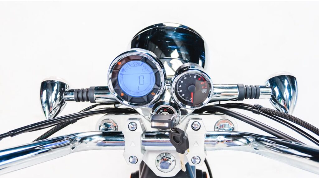 A Denver possui painel digital e analógico com indicador de combustível, marcha, neutro, conta giros, pisca alerta e lampejador de farol, possibilitando a visualização de todos os itens essenciais.