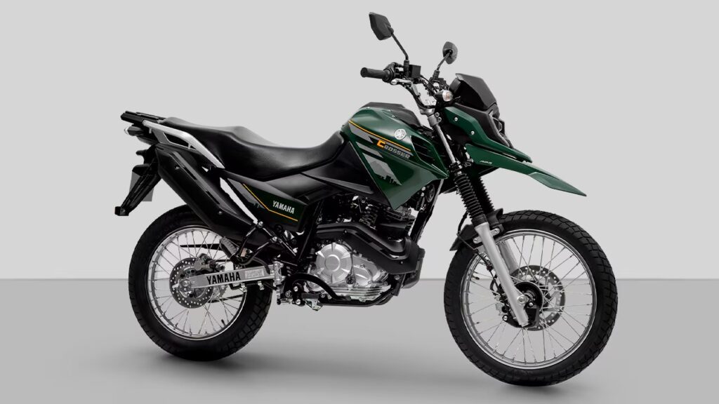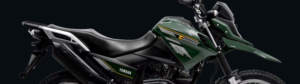 Yamaha Crosser 150 2025 apresenta um motor monocilíndrico flex de 149 cc, com 11,7 cv de potência a 7.250 rpm e 1,3 kgfm de torque a 6.000 rpm. A moto possui suspensão dianteira telescópica e suspensão traseira monocross com link. A Crosser 150 2025 tem freios a disco com ABS na dianteira e freio a disco na traseira.
